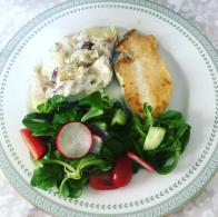 At the weekend I got a really bad craving for homemade potato salad. I have no idea why, but something in me wanted homemade potato salad and so that’s what I was going to have! So I based my whole meal around the potato salad and I didn’t let myself down.
