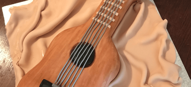 Now I don’t mind admitting that I’m a very good baker – my cakes and bakes always get such positive feedback and I know myself when something is good. I also know what I’m not so good at, and making my cakes look pretty is one such thing. I called in a favour from Lisa, who I’ve teamed up with at Willow Bough. Lisa is the queen of sugar craft and can make anything out of icing. She really is a very talented lady and I cannot sing her praises enough. Having made the carrot cake (which was absolutely beautiful, even if I do say so myself!) I presented it to Lisa to turn into a true masterpiece. Which is exactly what she did, turning my cake into a guitar.