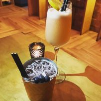 We sat by the bar, which is beautifully decorated with pretty cherry blossom overhead and has a refreshingly unpredictable range of cocktails. We started with a cocktail each; I chose Wild Flowers (hibiki, blackberry, lime, and cranberry) and Livvie chose a Fuzzy Guava (vodka, prosecco, peach schnapps, orange, and lemon). Having also tried the Long Night (gin, whisky, rum, Cointreau, vodka, and ginger ale) – which tastes just like childhood sweets refreshers – I feel confident in saying that whichever cocktail you choose you won’t be disappointed. While they’re standard London prices it did feel like we were getting a bit more alcohol per cocktail than some places offer too, so we were happy.