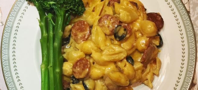 Chorizo and olive macaroni cheese; a taste of summer with winter comfort