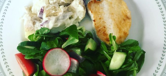 At the weekend I got a really bad craving for homemade potato salad. I have no idea why, but something in me wanted homemade potato salad and so that’s what I was going to have! So I based my whole meal around the potato salad and I didn’t let myself down.